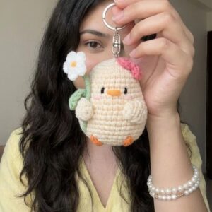 Daisy Chick Crochet Keychain – Handmade Cute Amigurumi Charm